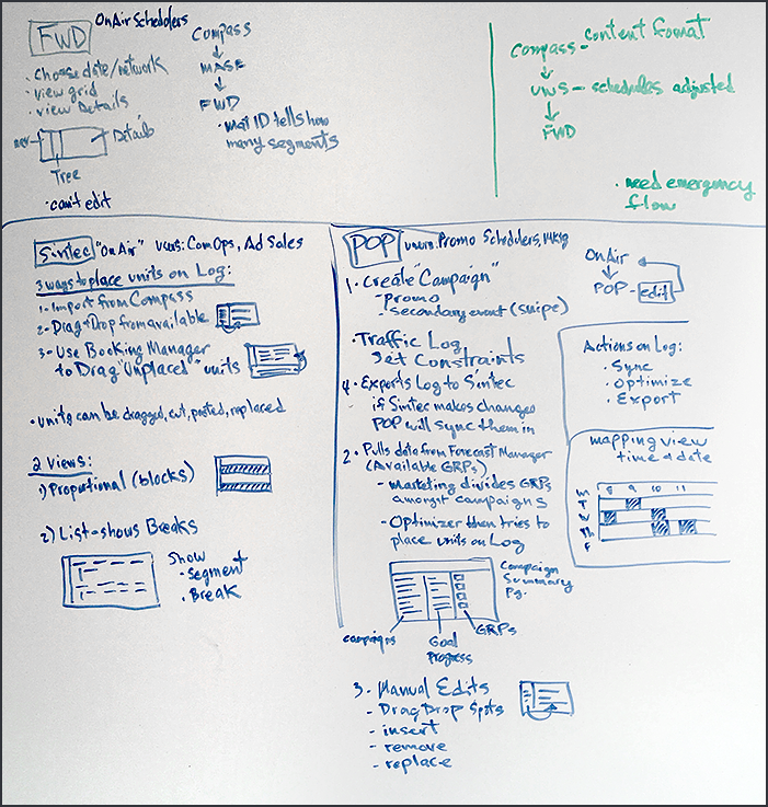 The current workflow involved either emailing or printing Excel spreadsheets from one department to another, where the formats were input manually into the legacy system and assigned to shows. This was a risk because spreadsheets are not secure, not trackable, and require manual entry. The manual creation of the spreadsheets in addition to the manual entry into the system was doubling effort.