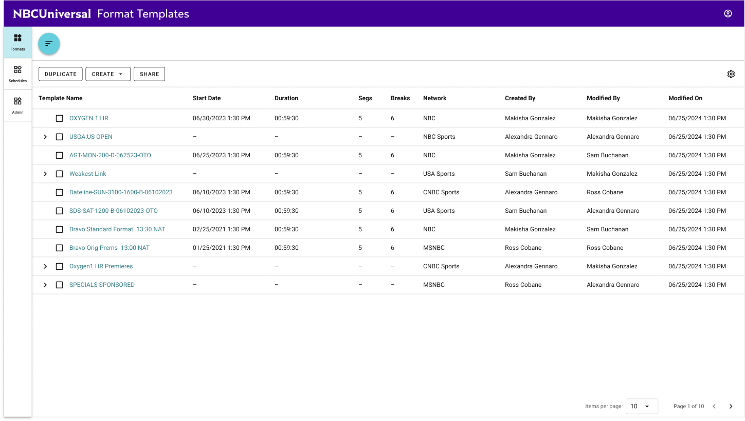 The final solution consisted of a user-friendly table UI that enabled users to create, search, edit, share, and delete format templates.